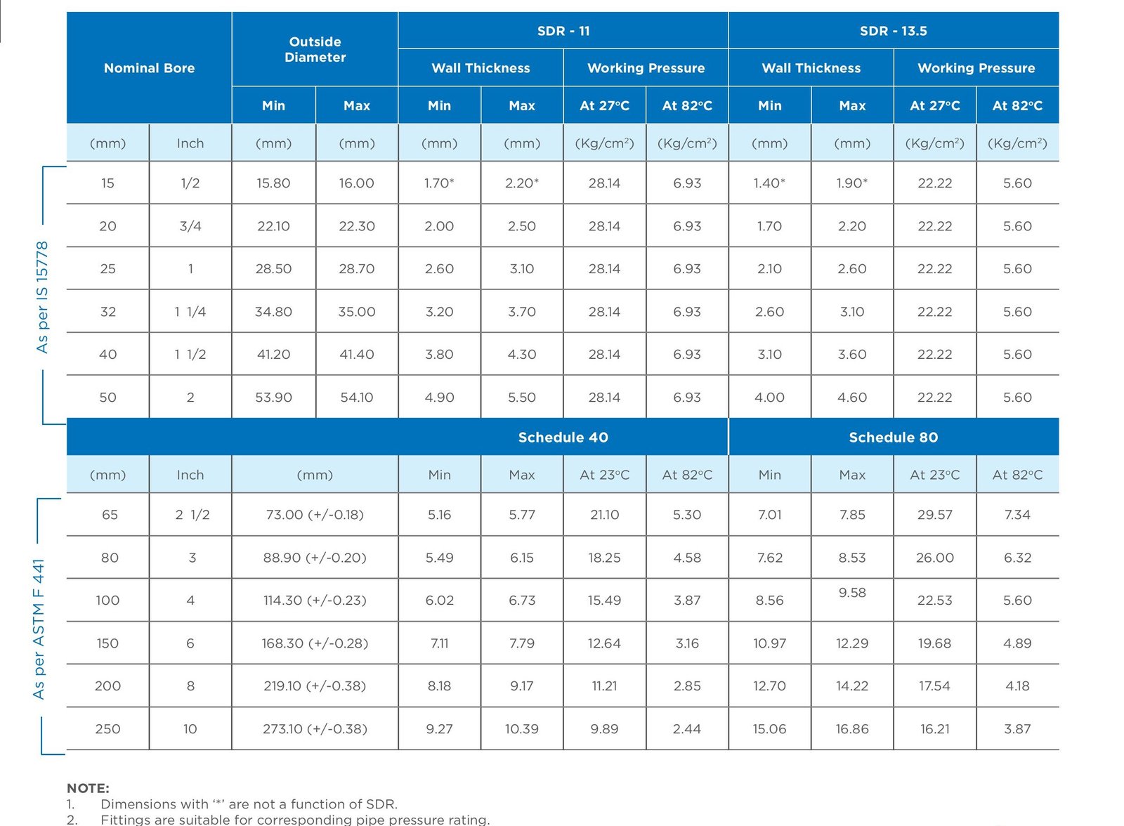 uPVC pipes & fittings are made of unplasticized polyvinyl chloride material. This piping system can withstand temperatures up to 600C and is only used for cold water applications. This system is extensively used in commercial, residential & industries for the usage of cold water. These pipes and fittings are joined with the help of uPVC solvent cement. With the use of solvent cement, the joints become everlasting once installed. Threaded joints are also provided for transition joints. The pipes are manufactured in a variety of sizes and thicknesses to suit the usage requirement.